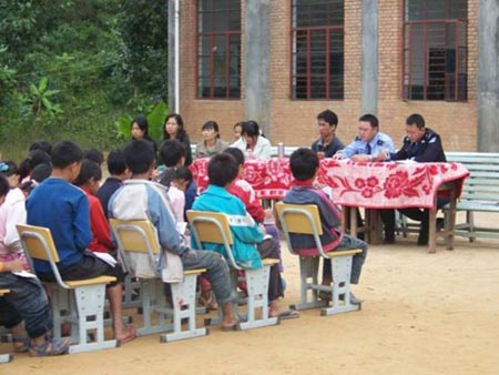 为进一步落实“五进”工作,提高师生的交通安全意识,双江县公安局交警大队勐库中队民警深入辖区各中、小学,开展交通安全宣传进校园活动,促进预防特大道路交通事故“百日行动”的顺利开展。