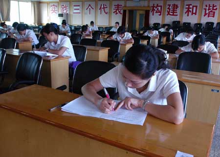 浙江省绍兴市汽运集团公路客运中心为推进“春之旅”服务品牌工程建设,提升交通窗口单位优质服务质量,经常对全体员工进行业务知识培训,结合笔试、技能考试,使员工熟练掌握业务技能。图为,最近又有20多名站务员正在参加星级站务员业务技能笔试。