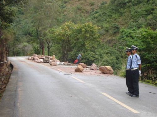 四、开展隐患排查,加大整治力度。大队结合当前正在开展的预防特大交通事故百日行动,认真开展危险路段排查工作,发现道路路面积水、泥泞、山体滑波、道路坍塌等安全隐患,及时通知相关部门进行隐患处理,不能立即消除的及时设置警示标志,安排专人值守,通过喊话、警报等方式提醒过往车辆减速行驶、注意安全。