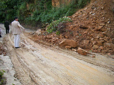 由于近日来临翔区辖区内连降大雨,为深入开展预防特大道路交通事故“百日行动”,预防和减少道路交通事故的发生,保障辖区内道路安全、畅通,2008年11月4日,临翔区交警大队副大队长李建平带领事故中队民警协同临翔区公路管理段领导对临清线因降雨受损的路段进行排查。