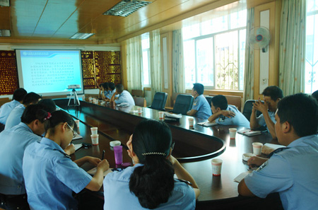 一是组织车管所成员在云县车管所设立的窗口部门全体人员会议,组织学习《人民警察内务条令》、《公安机关窗口单位服务规定》、《公安机关人民警察着装管理规定》、《关于开展车辆管理所警容警纪教育整改活动的通知》等一系列通知精神,要求参加学习的人员写出深刻的学习心得体会,并在会上宣读。