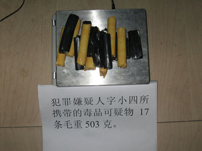 近日,永德县公安局交警大队、乌木龙派出所、乌木龙刑侦中队联合行动,破获一起毒品案,缴获精制毒品海洛因503克,抓获犯罪嫌疑人1名。