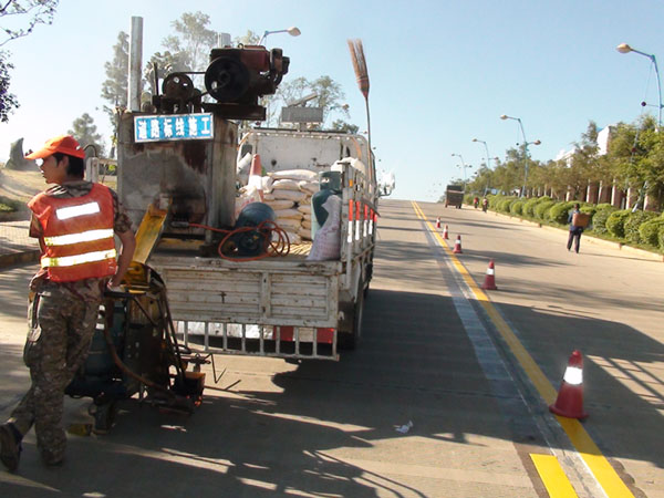 工人们正在施划交通标线