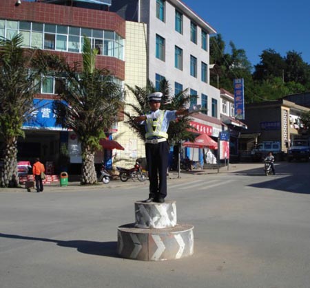 由于当日正值双江县城街天,县城主要路口车流量较大,双江县公安局交警大队领导接到分片区供电信息后十分重视,决定由城镇中队为主体,民警和协管员定人、定时轮流在十字路口进行交通指挥和疏导。早上7时50分执勤民警准时到岗,以饱满的热情和刚劲的手势指挥着县城十字路口的交通。19时,夜幕降临,而县城十字路口的供电仍未恢复,民警和协管员不辞辛苦依旧守候着三尺岗台,为城区交通安全、畅通默默奉献着。