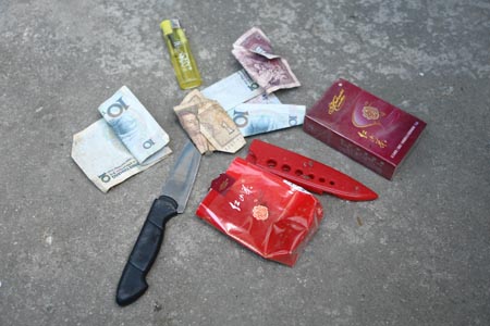 2008年11月30日15时许,云县公安局交警大队城镇中队民警在执勤时接到一老人举报,称:在客运站附近有一伙人正在进行持刀抢劫,民警接到举报后火速赶到案发现场,将其中一名犯罪嫌疑人当场抓获,收缴尖刀一把。