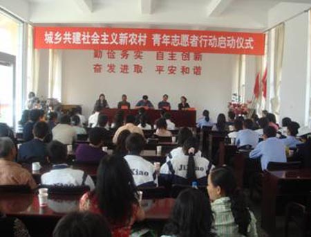 在启动仪式上,县委办赵登界主任在听取了平村对社会主义新农村建设的发展规划汇报后作了重要讲话。一是发展社会主义新农村要紧紧依靠青年志愿者,充分调动青年人积极性和广开思路的优势性,为社会主义新农村献计献策。二是要求平村村委会要发挥新农村建设主阵地作用,集思广益,招贤纳才,把平村建设成为我县新农村建设的典范。接着,有关领导向志愿者服务队授了队旗,部分单位向平村捐赠了电脑、书籍、化肥、物品等,以示为新农村建设贡献自己的力量。