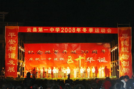 2008年12月11日云县公安局交警大队全体民警及协管员以特殊的方式为云县一中“纪念改革开放30周年、建校50周年”文艺晚会献礼。