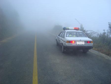 为保障道路的交通安全,云南省凤庆县公安局交警大队小湾中队结合辖区实际、迅速启动《凤庆县公安局交警大队小湾中队恶劣天气应急预案》,调整警务模式,加大在大雾天气时间段上公路的巡逻力度,通过用警灯闪烁、喊话等方式,拉醒过往车辆和驾驶员注意行车安全,确保辖区道路安全、畅通、有序。