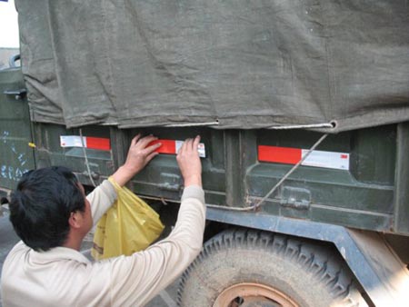 为进一步加强机动车车身反光标识和侧后部防护装置安装工作,双江县公安局交警大队进行了一系列的有效措施,使粘贴反光标识工作顺利进行。