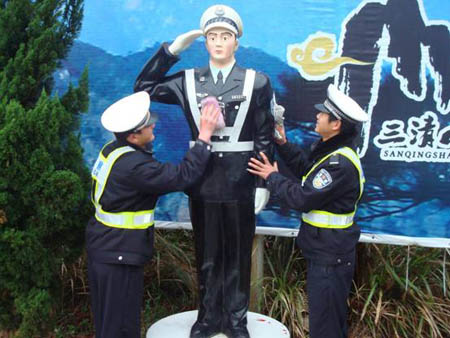 [江西]三清山交警为仿真警察“大洗澡”(图文)