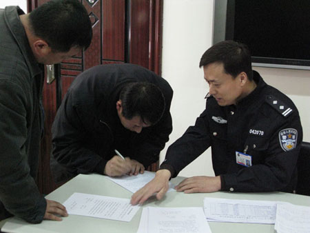 随着中小学开学的临近,运送学生的车辆开始陆续接送学生,为了保证运送学生车辆的交通安全,确保不发生群死群伤交通事故,落实构建和谐社会,实现经济跨越式发展的目标,绥芬河交警大队结合集中整治严重交通违法行为行动,立即组织民警对辖区学校运送学生的车辆和驾驶人进行一次安全检查、教育和清理整顿。图为:副大队长金立海在接送学生车辆驾驶员和车主签订安全责任状。