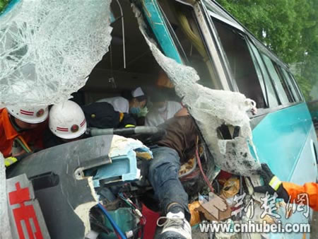 [湖北]江陵“五一”发生恶性交通事故 1人被困客车内(图文)