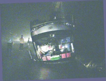[广东]河源一大客车雨中翻落6米深沟 1死9伤(图文)