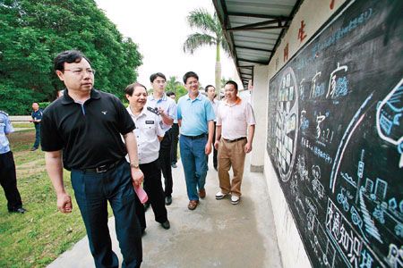 专家组在广西壮族自治区公安厅交警总队总队长韦宁贤陪同下在学校进行检查