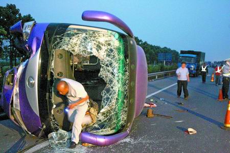 2009年6月3日下午6时许,连霍高速荥阳段602公里处发生一起惨烈的交通事故。当时,一辆行驶中的货车轮胎突然“飞落”快车道,导致一辆准备超车的大客车碾压其上,继而翻车。事故造成客车上13名乘客受伤,其中7人伤势严重,两名年仅20余岁的乘客被截肢。