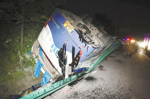 记者了解到,事发时,在这辆南坪―茶园的大客车上共载有24人。