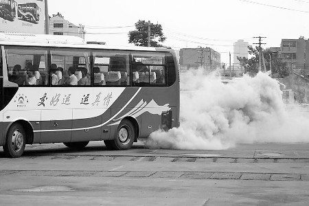 17日上午9时17分,一辆载有20余名乘客的客车以每小时60公里的时速行驶在104国道上,突然,一名乘客发现车体尾部冒起浓烟,他感到事情不妙,大声喊道“车着火了,赶紧救火”。听到喊声,驾驶员紧急把车停靠在路边并打开车门,让靠近车窗的乘客拿起身旁的安全锤向车窗“砸”去。乘务人员也紧急行动起来,指导其余乘客从车门安全有序离开车体,乘务人员也迅速拨打了119火警。之后,驾驶员取下车内灭火器向车尾跑去,打开阀门直“喷”冒烟部位。记者通过计时器了解到,从发现车体冒烟到乘客全部离开现场,整个过程仅用了45秒时间。