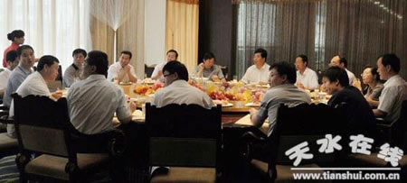天水市委书记、市人大主任张景辉,市委副书记、市长李文卿,市委常委、常务副市长柴金祥,市委常委、市委秘书长、麦积区委书记蒋晓强会见了徐亚华一行。