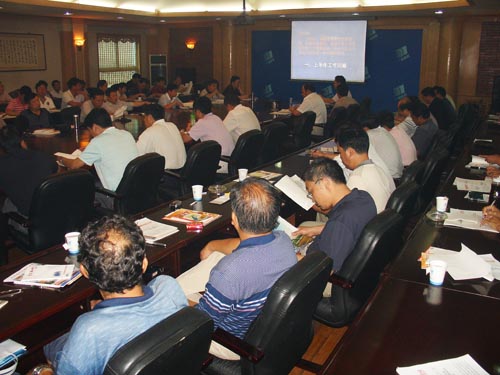 日前,集团公司2009年中工作会议在公司二楼会议室召开。集团公司党委书记、董事长李忠阳,总经理王永祥、党委副书记崔爱国等公司领导以及公司所属各基层单位党政领导、机关各部(室)负责人参加会议。会议由集团公司党委副书记崔爱国主持。