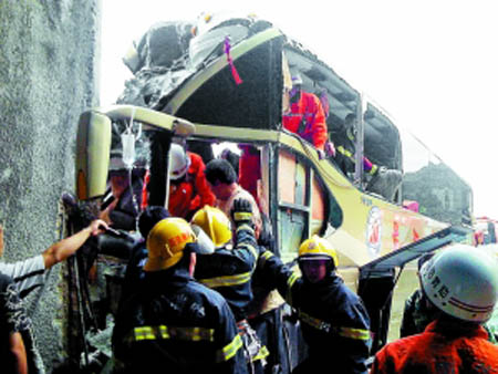 8月18日上午,贵州发生一起客车翻车事故,截至记者15时20分发稿时,这起车祸已造成6人死亡、8人重伤。这是救援人员在事故现场营救被困乘客。