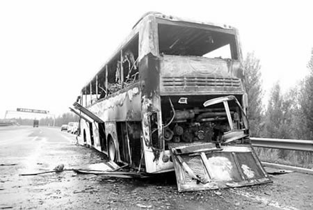 [辽宁]鞍山开往大连的大客突然自燃 42名乘客啥事没有(图文)