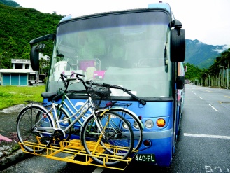 台湾花莲县大客车载单车今起试办半年,花莲客运率先上路,由花莲车站到寿丰车站,每车次附挂两辆。