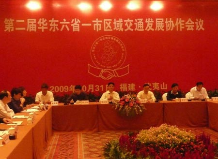 10月31日,第二届华东六省一市区域交通发展协作会议在我省武夷山市举行。交通运输部党组副书记、副部长翁孟勇及部规划司有关负责人,福建省副省长张志南,上海、江苏、浙江、安徽、福建、江西、山东交通运输厅(委)厅长(主任)及交通规划部门负责人参加了本次会议。