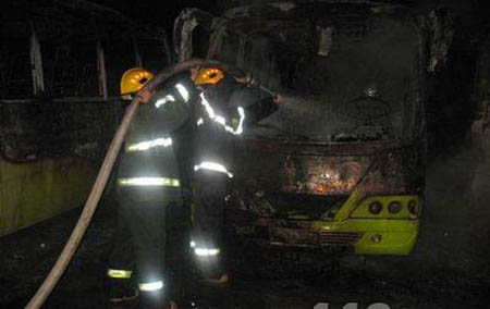[广西]两辆客车客运站内起火 玉林消防扑救(图文)