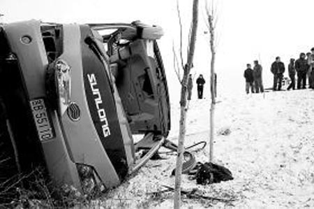 据交警部门介绍,经调查,初步判断事故原因为大客车赶超同方向行驶的轿车后,在并线过程中,因减挡过急,加之路面上的冰雪,造成车辆失控,侧翻进路沟内。事发的大客车,属吉林某运输公司的车辆,核定载客人数为33人,发生事故时实际载客24人。事发后,交警部门对冰雪路面紧急采取防滑措施。