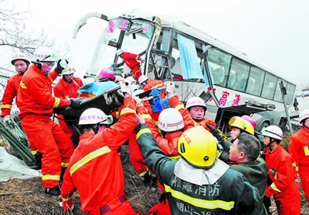 [湖南]路面结冰客车与货车追尾 30多名乘客砸窗逃生(图文)