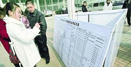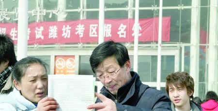 “陪考”的考生家长帮着“把脉”