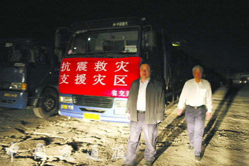2008年5月13日夜,梁旭正在组织向四川汶川地震灾区调运帐篷。