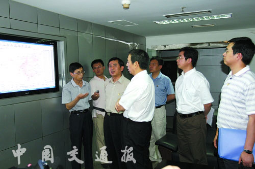 邱小发局长(左一)向冯正霖副部长(左三)汇报四川省GPS监控中心运行情况。