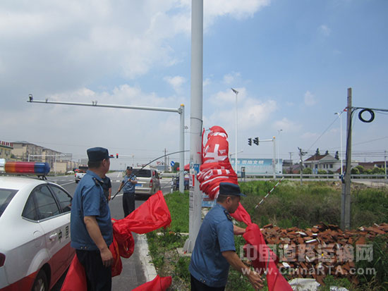 [江苏]启东路政:清理横幅非标 确保公路安全运行(图文)