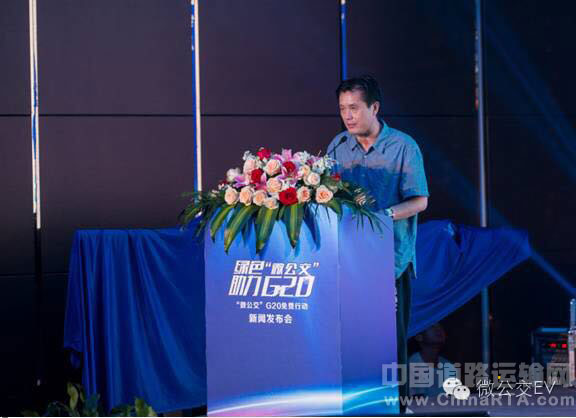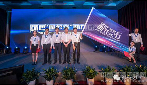 随后,是本次发布会的重头戏,浙江左中右电动汽车服务有限公司董事长饶正华发布“微公交”助力G20免费行动主题内容,具体包括服务、平台、安全、车辆、理念、体验六大升级,以及“微公交”G20免费畅行日、畅行周,即6月、7月、8月的4日、5日以及8月20—9月5日期间凭“微公交”APP推送的免费租车券可享受限时免费用车。同时,左中右公司还成立了绿色“微公交”G20志愿服务队,为G20筹备及召开期间提供志愿服务,会上绿色“微公交”G20志愿服务队还举行了庄重的宣誓并由微公交模式创始人胡晓明向志愿服务队进行了授旗。