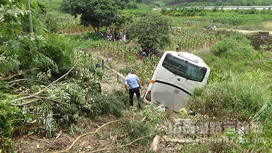 [广西]大巴车与小轿车相撞冲下护坡 高速交警及时展开救援(图文)
