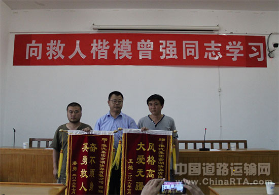 淮汽集团金湖公司曾强同志于6月24日在水塘里救出事故车辆上两个小女孩的感人事迹被曝光后,公司掀起一股向英雄学习的热潮。6月30日公司隆重召开曾强同志先进事迹表彰大会,号召全体员工向曾强同志学习:学习他路见她人遭难,毫不犹豫出手相救的仁爱善良之心;学习他遇险施救时的沉着、机智、果敢;学习他在平凡岗位为公司争荣誉、给社会添好声誉的高尚精神境界。