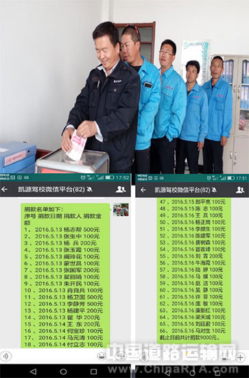近日,石嘴山市凯源驾校教职工积极响应行业党支部和工会在校微信平台上的倡议,为驾校患病教练员杨洪军组织了“献爱心”捐款活动。在捐款现场,驾校领导带头捐款,全体教职工有的捐500元,有的捐300元、200元、100元,大家纷纷伸出援助之手,奉献爱心,短短的两天时间,66人募集捐款9000元。