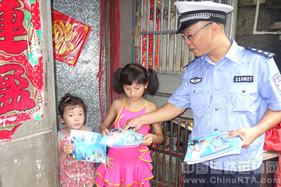 最后,民警还向孩子们及家长散发了《中小学生交通安全读本》、《致家长的一封信》等宣传资料,充分发挥小手牵大手作用,对家长加强交通安全警示教育,引导“留守儿童、小候鸟”养成遵守交通法规的良好习惯。让孩子们度过一个平安、快乐的暑假。