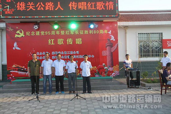 7月1日,为纪念中国共产党成立95周年及长征胜利80周年,嘉峪关公路工程公司举行“庆七一”红歌传唱暨表彰大会,庆祝建党95周年。嘉峪关公路管理局工会戴主席、纪委王书记出席。