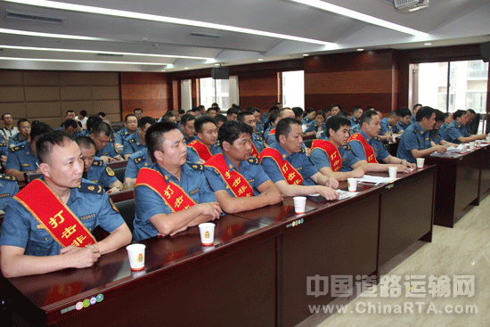 7月6日下午,市运管处召开大会对6月份开展的打击非法营运专项整治工作进行总结表彰,对下阶段的“打非”工作进行安排部署,对获得打击非法营运能手和标兵荣誉称号的谭显明、龙凯辉等10人及参与“打非”的一线稽查队员进行了表彰。市交通运输局副局长周新辉,市运管处处长李明辉等局、处领导出席会议。会议由副处长石加强主持,副处长彭达做总结报告。市运管处机关全体干部职工、市公安局驻市交通运输局联络室公安协警、城区五家出租车公司负责人参加了会议。