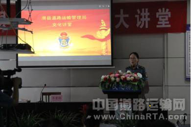 7月15日上午9时,滑县第八联办文明单位文化大讲堂开讲,主办单位运管局邀请了滑县的中国作协会员、滑县作协主席、地方史志办主任、《厚重滑州》的作者齐素玲女士,以“厚重滑州”为题,生动的为大家讲授了滑县的厚重历史、人物渊源与名胜故事,来自十二个文明单位的代表与运管局全体干部职工参加了此次文化大讲堂。