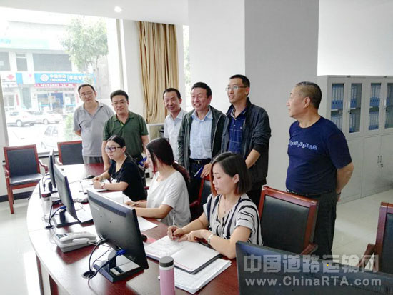 7月20日上午,忻州市运管局祁耀明局长、冯俊怀副局长、忻州市交通运政稽查支队于雷支队长以及相关科室一行人在新中标的山西中天伟达贸易有限公司GPS动态监控中心调研。