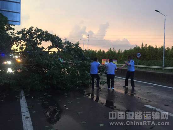 [江苏]淮安市交警三大队迎战雷阵雨快速清除倒伏路面行道树(图文)