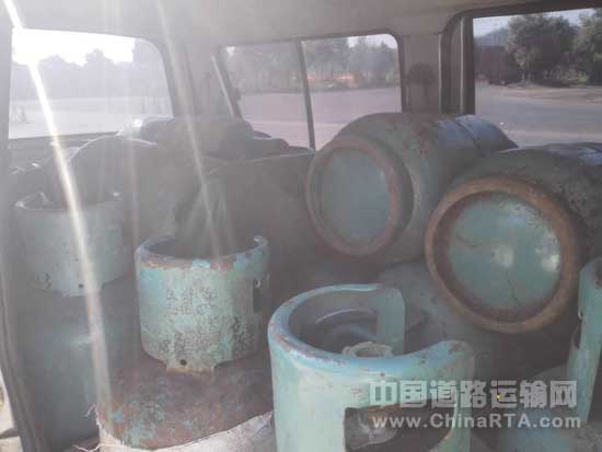 当日上午8:15分左右,大余公安交管大队民警在青龙高速路口卡点,对一辆牌照为由赣州南康区驶住大们县城的赣BY9402的面包车作例行检查时,发现驾驶人神色慌张,细心的民警当即要求驾驶人打开车厢接受检查。打开车门后,发现面包车已被拆除座椅,满满的装载了了22瓶灌满了液化气的所气罐,民警立即对车辆进行暂扣 。