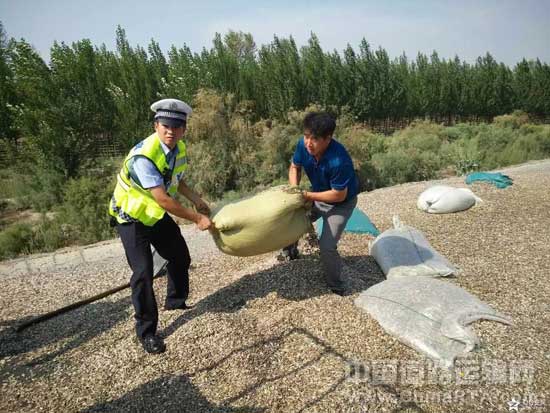 [内蒙古]葵花籽捆绑不牢撒一路 交警二话没说来帮忙(图文)