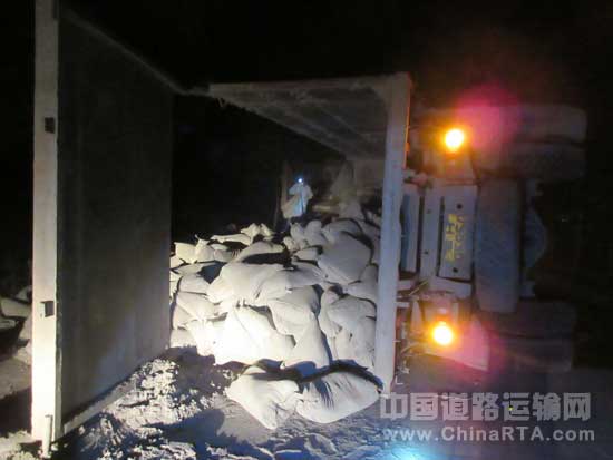 [江西]疲劳驾驶致货车侧翻 民警奋战7小时施救(图文)