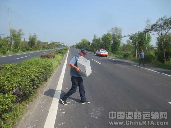 [江苏]泰兴路政员徒手清理砖石 确保公路安全(图文)