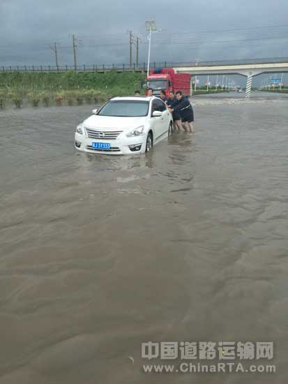 由于铁路桥下积水面积大、积水深导致过往车辆出现故障无法行驶,正在现场指导工作的熊俊杰与孟辉上前帮助将车辆推离水中,并得到过往车辆及行人的一致好评。