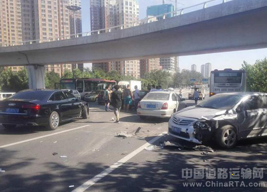天津民权门桥发生交通事故 七车相撞一片狼藉